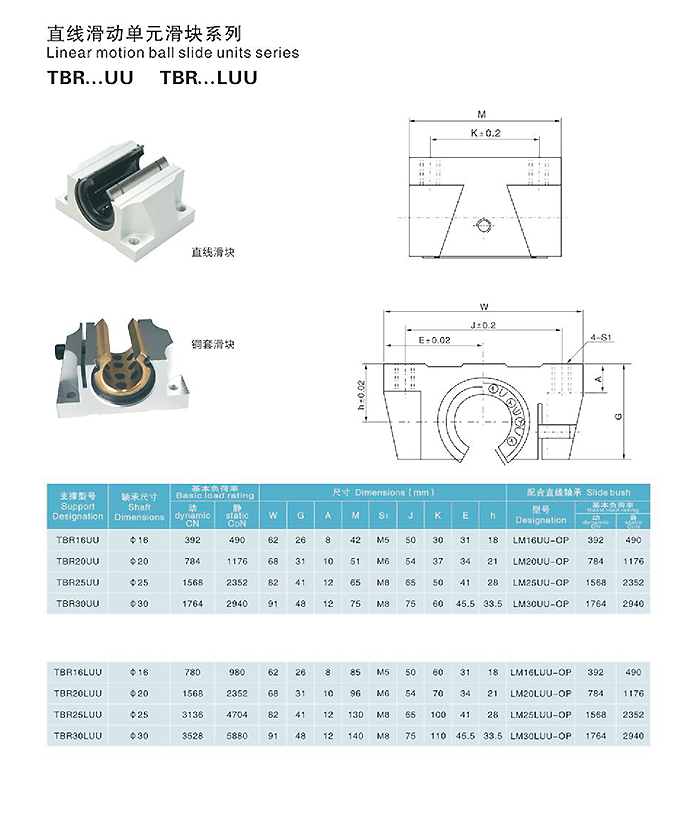 直線滑動單元滑塊系列TBR...UU TBR...LUU