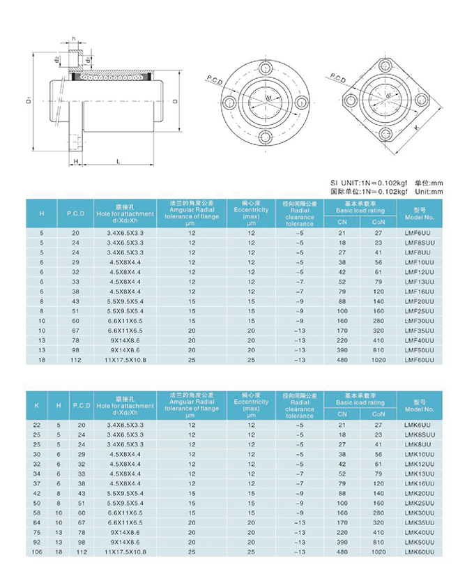 法蘭直線(xiàn)軸承系列LMF...UU LMK...UU